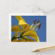 Foto de cerca de un hermoso lirio amarillo contra un cielo azul claro.