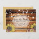 Esta tarjeta postal de guardar la fecha rústica presenta un fondo de tablón de madera con hermosa letra y girasoles vintage.