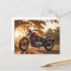Esta tarjeta postal presenta una motocicleta en el campo al final de la tarde.