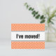 Tarjeta postal de mudanza de nuevo hogar coral rosa y lunares blancos Texto de mudanza personalizado; ¡Nos hemos mudado! Agrega tu nueva dirección en la parte posterior. Tarjetas de mudanza modernas para hogar y negocio.