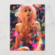 Tarjeta Postal de Mujer con Cabello Rosa Pastel