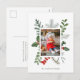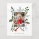Una hermosa disposición de follaje y bayas rojas en acuarela enmarca tu foto en esta tarjeta postal de Navidad destacada. La tarjeta tiene una tipografía sencilla y elegante, y hay mucho espacio para agregar tu mensaje personal.