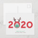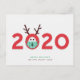 La tarjeta perfecta para las fiestas de 2020, este diseño personalizable con una ilustración de un reno con máscara integrado en el año 2020 lo dice todo. Un poco de humor para alegrar el ambiente en esta temporada navideña. En rojo, verde y marrón. El saludo y los nombres son personalizables.