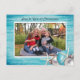 Gran postal de Navidades fotográficos en azul marino bonito con un tema de vacaciones tropicales - O borrar fácilmente la estrella de mar. Se puede personalizar un saludo sencillo en el frente, con texto al revés para un saludo y firma. Madera rústica en azul tropical con ornamentos de estrella blanca y árbol de bola hacen un marco horizontal para tu foto.