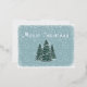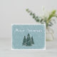 Un bosque encantado en el que los árboles se decoran misteriosamente para los Navidades durante las horas de luz. Los árboles que están delante de esta postal tienen una cinta rodante envuelta alrededor de ellos. La espalda tiene tu saludo y tu nombre. Cuando todo está lleno, están listos para irse. Envíe sus bendiciones con esta postal de diseño azul Spruce.