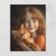 TARJETA POSTAL ADORABLE DE GATO PELIRROJO Y NIÑA PELIRROJA