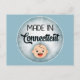 Esta graciosa postal presenta una cara de bebé blanca que dice "Hecho en Connecticut" en un fondo azul. Perfecto para invitaciones de recién nacido o sólo para diversión.