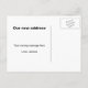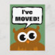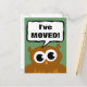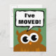 Tarjeta postal de nueva dirección | dibujo animado de búho marrón lindo. Mensaje personalizado para mudarse a una nueva casa o área. Cambio de dirección en el reverso.