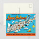 Mapa vintage ilustrado coloridamente de Long Island, Nueva York. Es una vieja tarjeta postal reutilizada a la que puedes agregar tu saludo/mensaje personal. Es ideal para un cumpleaños, aniversario o cualquier ocasión.
