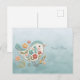 Tarjeta postal de pajarito azul flores rosadas
