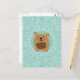 Este diseño presenta un perro marrón divertido con lengua rosa sobre un fondo turquesa.