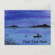 ¡Una pintura de acuarela de un hombre pescando al atardecer adorna esta tarjeta postal personalizable!