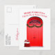 Esta tarjeta postal diseñada para las vacaciones de Navidad presenta puertas dobles rojas con una ventana en la parte superior de paladio para un mensaje de nueva casa para las vacaciones. Hay una guirnalda de abeto debajo de la ventana y una bolsa de Santa llena de regalos en los escalones. Personalice el texto de cambio de dirección y saludo en la parte delantera y trasera, elimine cualquier texto o edite usando la herramienta de diseño para seleccionar un estilo de fuente, tamaño y color diferentes.