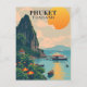 Escapa a las impresionantes playas de Phuket, Tailandia, con esta tarjeta postal ilustrada de estilo vintage. Con barcos de cola larga, palmeras y barco, esta tarjeta postal coleccionable evoca la belleza atemporal de la ubicación tropical de Tailandia