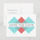 Tarjeta postal moderna y chic de presentación de tríada geométrica con un diseño de triángulo elegante en turquesa y rojo. Fácil de personalizar, este diseño simple pero elegante se puede personalizar con los detalles de su boda. Haga clic en "Personalizar" para encontrar más opciones de personalización.