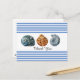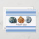 Esta tarjeta postal de estilo de playa presenta tres conchas marinas en un fondo a rayas azules y blancas. Hay un espacio para un saludo. Cómprelo como se muestra con el saludo de agradecimiento o agregue su propio texto como "Guarde la fecha" o "Feliz Cumpleaños". La elección es suya. Hay un saludo en el reverso que se puede personalizar con sus propias palabras.