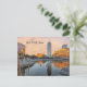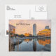 Tarjeta postal de recuperación que presenta una salida del sol dorada temprana en Pioneer Plaza en el centro de Dallas, Texas, Estados Unidos. El rascacielos alto es el emblemático Bank of America Plaza. ¿Buscas más impresiones o productos? No dudes en visitar mi tienda: http://www.zazzle.com/timelessmomentsphtgy
