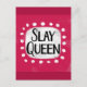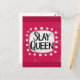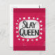 Un diseño tipográfico divertido y lindo que dice "Reina Asesina". Es texto negro sobre un rectángulo blanco con puntos blancos funky y juguetones que lo rodean, todo sobre un fondo magenta rosa intenso.