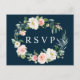 Tarjeta postal de respuesta de boda elegante con una corona de flores de acuarela en rosa beis y blanco con follaje verde. Para una personalización más avanzada de este diseño, haga clic en el botón "Personalizar". También están disponibles artículos coincidentes.