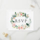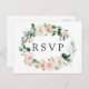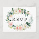 Tarjeta postal de respuesta para boda elegante con una corona de flores de acuarela en rosa pálido y blanco con follaje verde. Para una personalización más avanzada de este diseño, por favor haga clic en el botón "Personalizar". También están disponibles artículos que coinciden.