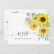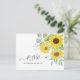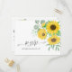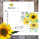 El diseño presenta un ramo de girasoles amarillos en acuarela, eucalipto y otras hojas y ramitas sobre fondo negro.