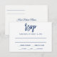 Esta moderna tarjeta de respuesta coordina con nuestro conjunto de invitaciones de caligrafía de pincel. El color de la palabra "rsvp" está configurado en azul marino, pero puedes cambiarlo a lo que te guste simplemente cambiando el color de fondo.