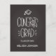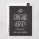 Chalkboard Congrats Grad postcard personalizado con el nombre editable y el año. Grabado de tiza blanca y decoración de tapón de graduación. Tarjeta postal neutral de género con signo de felicitaciones en la parte trasera. ¡El texto editable también está en la parte trasera! Visita la tienda para ver toda la colección.