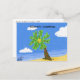Envíe a su amigo o familiar favorito una cálida bienvenida para las vacaciones. Una palmera con luces y estrellas está lista para que Santa llegue a una playa desierta.