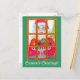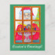 Una imagen adorable y caprichosa de Santa encendiendo las velas de la menorá adorna esta tarjeta postal.