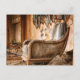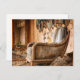 Tarjeta postal de silla antigua rústica. Imagina las cosas que esta vieja silla ha visto.