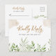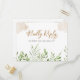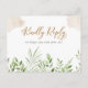 Esta tarjeta postal de solicitud de canción de vegetación dorada RSVP es perfecta para una boda boho. El diseño elegante pero rústico presenta hojas de acuarela verde oscuro y eucalipto con un ambiente moderno de bosque bohemio.