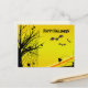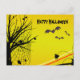 Una telaraña sobre un árbol espeluznante y murciélagos sobre fondo amarillo.