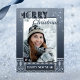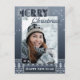 Una tarjeta postal de plantilla de foto de suéter feo con Feliz Navidad y un Feliz Año Nuevo. El diseño muestra un patrón azul marino con luces de copos de nieve brillantes. Ideal tanto para uso personal como para fines corporativos para dar las gracias a los clientes.