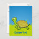 Ilustración de dibujos animados de una tortuga feliz. Texto personalizado.