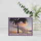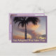 EL POSTCARD CUENTA CON UN ÁRBOL DE PALMERAS RESPALDADO POR UN HERMOSO PUENTE TURCO Y CAICOS EN COLORES DE LAVANDERÍA Y PAZ. EL TEXTO FRENTE DICE: "HE ADOPTADO ESTE ÁRBOL DE PALMA" Y EL LADO INVERSO DICE: "PROBABLEMENTE DEBERÍA QUEDARME AQUÍ PARA CUIDARLO. EL AMOR, DE LOS TURCOS SONOS Y LOS CAICOS, 'YO' —UN POCO DE HUMOR PARA LOS SEGUIDORES QUE QUEDAN DETRÁS DE CASA.