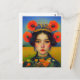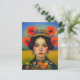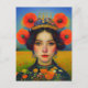 Hermosa postal con un retrato original de un chica ucraniano. De pie con Ucrania