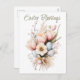 Celebre la belleza de la primavera con esta elegante postal de Pascua, con un delicado ramo de tulipanes de color agua, artísticamente arreglado con huevos pastel de Pascua escondidos entre las flores. Las suaves brochas que fluyen dan vida a los tulipanes en tonos rosas, amarillos y morados, simbolizando la renovación y la alegría. Por encima del arreglo floral, la frase "Bendiciones de Pascua" está escrita en un guión elegante y escrito a mano, añadiendo un toque de calidez y elegancia. Ya sea mandando amor a la familia, amigos o alguien especial, esta postal es una hermosa manera de compartir el espíritu de Pascua.