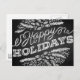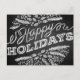 Los saludos de las vacaciones (aquí "Happy Holidays") se muestran en esta tarjeta de Navidades de diseño y estilo pizarra. La tipografía escrita a mano parece una tiza en una pizarra, los ilustraciones de elementos Navidades tiza (ramas de pino, bayas) están dispuestos en un círculo decorativo. Puede personalizar con sus propios nombres y mensajes en la parte posterior. Disponible con productos a juego.
