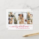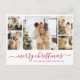 Caligrafía Elegante Presupuestario Simple Rojo y Blanco 5 Collages de fotos Feliz Navidad Script postal de Navidad. Esta tarjeta festiva, minimalista, de cinco (5) fotos navideñas presenta un collage de fotos de bonito y dice "¡Feliz Navidad!" El texto de bienvenida de "Feliz Navidad" está escrito en un hermoso tipo de letra con letras a mano y con cruz de torso. Tarjeta de saludo de bonito para su familia y amigos en la temporada de vacaciones de invierno.