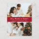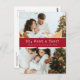 Traiga el año nuevo con esta tarjeta postal única de vacaciones Red What A Year. Esta elegante tarjeta incluye "Oh, qué año" en un elegante tipo de letra de máquina de escribir, 2 fotos familiares y texto en la parte posterior para personalizar. Texto blanco sobre fondo rojo.