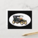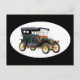 Postal. Auto vintage de principios del siglo XX, la era de la elegancia. Este clásico e histórico automóvil cuenta con pintura verde y negra, tapicería de cuero abotonado y un tejadillo de tela negra convertible de tapa suave.