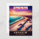 Invitación de boda de Anaheim para guardar la fecha, tarjeta postal de viaje. Vista aérea de la playa, en colores vibrantes de la puesta de sol.