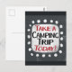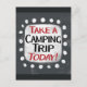 "Haz un viaje de camping hoy" es un diseño de texto lindo en gris con texto negro y rojo. Se sienta en una forma de acento blanco y puntos blancos lindos que lo rodean.