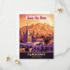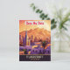 Invitación de boda de Flagstaff para guardar la fecha, tarjeta postal de viaje. Horizonte de la ciudad y la montaña detrás.