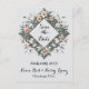 Esta invitación de tarjeta postal especial presenta un diseño floral elegante, enmarcado hermosamente dentro de una delicada forma de diamante. Los detalles de las flores y el estilo atemporal establecen el tono perfecto para una celebración de boda memorable y sofisticada.