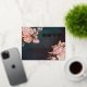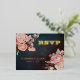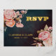 Relieve metalizado floral rosa negrita RSVP boda tarjeta postal. Flores llamativas sobre un fondo marino romántico.