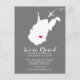 Invitación móvil | VIRGINIA OCCIDENTAL invitación moderna en movimiento que presenta el estado de VIRGINIA OCCIDENTAL con un corazón rojo y un avión sobre un fondo gris. El color de fondo se puede cambiar fácilmente haciendo clic en personalizar y luego en personalizar para ver nuestro selector de color. ¡Desde ahí también puedes mover el avión y el corazón! Póngase en contacto con nuestra tienda si necesita ayuda o necesita otro estado.