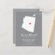 Invitación móvil | Estado Arizona,invitación moderna en movimiento con el estado de Arizona, con un corazón rojo y un avión sobre un fondo gris. El color de fondo se puede cambiar fácilmente haciendo clic en personalizar y luego en personalizar para ver nuestro selector de color. ¡Desde ahí también puedes mover el avión y el corazón! Póngase en contacto con nuestra tienda si necesita ayuda o necesita otro estado.
