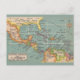 Un maravilloso mapa vintage de Centroamérica y el Caribe reutilizado en una tarjeta postal.