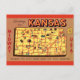 Una colorida tarjeta postal vintage del mapa del estado de Kansas reutilizada en una nueva tarjeta postal!